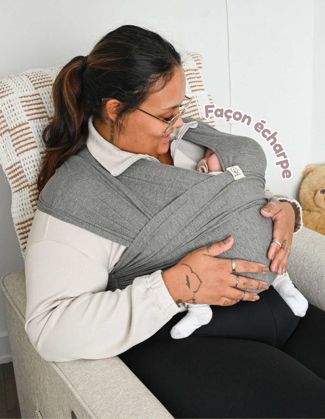 Grâce à son anneau, il permet une installation rapide et facile, en plus de pouvoir porter bébé à la fois façon écharpe et façon ring sling!